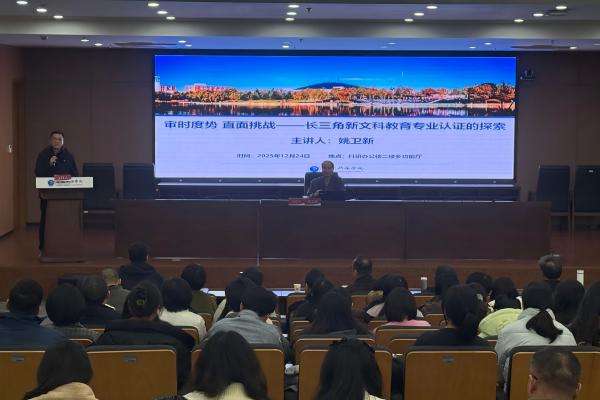 同期,姚卫新教授以《审时度势 直面挑战 —— 长三角新文科教育专业认证的探索》为题作专题讲座。讲座中,姚卫新教授高度肯定我校在内涵建设、师资队伍建设等方面取得的扎实成效,结合全国新文科发展趋势,系统解读新文科专业认证的时代价值与核心逻辑,从认证探索历程、工作模式构建、四大支柱、坚守取向、逻辑结构等维度作深度阐释,全面分享长三角地区新文科专业认证的实践成果与创新经验,梳理剖析认证工作中的重点难点问题,并提出针对性应对思路。
